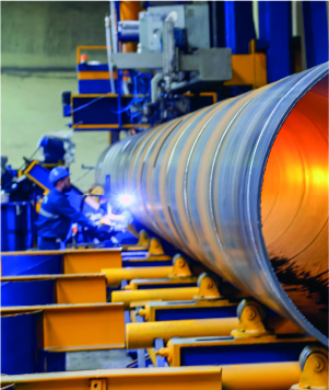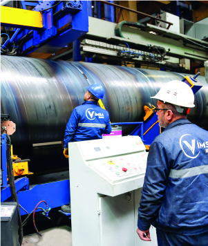 يتم تنظيف الأنابيب باستخدام سيارات أوتوماتيكية حيث يتم ضبط السرعة المطلوبة وتدويرها حول نفسها، وفي هذه المرحلة، يتم رش الطلاء داخل أو خارج الأنبوب باستخدام مضخات عبر حركة ذراع رأسية متعامدة مع محور دوران الأنبوب.